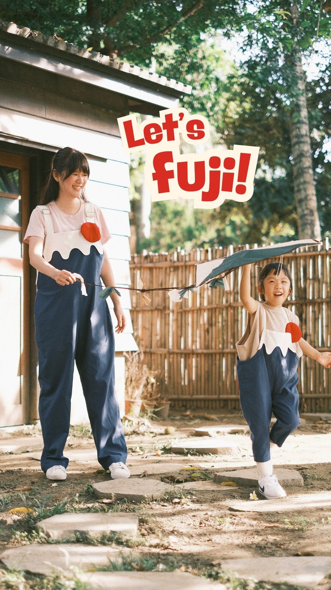 富士山親子吊帶褲